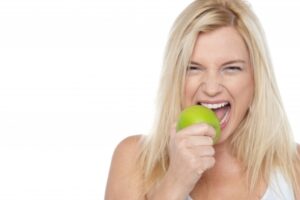 Crunchy fruits and vegetables, such as apples, carrots and celery, require extra chewing which produces saliva. Saliva helps to neutralize bacteria that cause tooth decay. Also, chewing on naturally abrasive foods removes stuck food particles, massages gums and cleans between teeth.